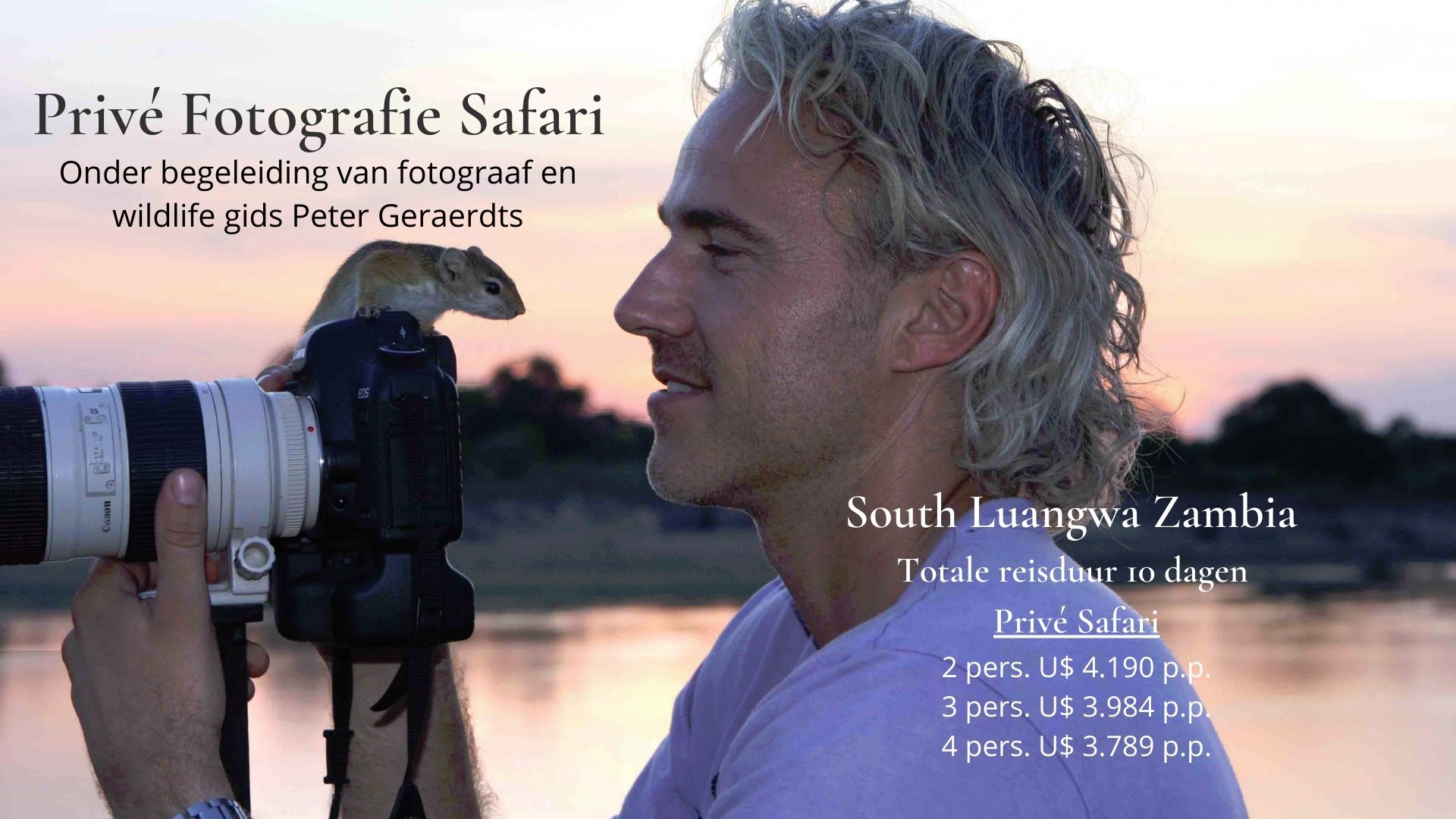 Door middel van losse reisonderdelen stellen wij uw reis samen. En juist omdat wij geen gebruik maken van tussenhandelaren zijn de mogelijkheden voor u als klant vrijwel oneindig. Door onze kennis en kunde gecombineerd met een goede portie creativiteit maken wij er iets moois van! Neem eens een kijkje op de vele reissuggesties Al onze reizen zijn individueel, dat wil zeggen geheel verzorgd en middels wegtransfers of vliegtuigjes wordt u van A naar B gebracht. Afhankelijk van de bezetting van de accommodatie kunnen de activiteiten met andere gasten worden ondernomen. Met Privé reizen bedoelen wij dat u ook alle activiteiten zoals game drives en wandelsafari's met een professionele privé gids en privé voertuig onderneemt. Dus zonder andere gasten van de lodge! Familiereizen of groepsreizen vanaf 4 - 5 personen zijn vaak al privé reizen. U reist in comfortabele privé voertuigen en/of privé vliegtuigjes. Afhankelijk van de groepsgrootte kunnen er meerdere professionele privé gidsen met u meegaan. Lees verder over privé familiehuizen & groepsaccommodaties, de verschillen tussen de safari landen, aankleding van de reis en op safari met kinderen. |